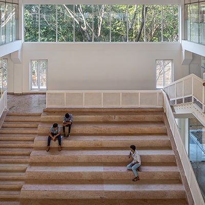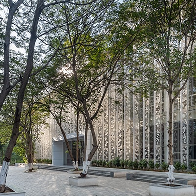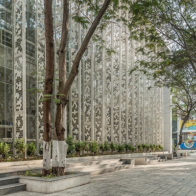 At the heart of the university lies its central node, a nexus of learning and innovation. Guided by space-making concepts, each floor serves a distinct purpose, meticulously designed to foster collaboration and growth. The ground floor is dedicated to vibrant discussions and entrepreneurial endeavours, housing the incubation hub—an initiative supported by AACT and backed by the Tamil Nadu Startup Fund. Here, aspiring minds converge, fuelled by creativity and ambition, shaping the future of entrepreneurship. Ascending to the first floor unveils a realm of academia, where classrooms provide the canvas for intellectual exploration and knowledge dissemination. Meanwhile, the second floor elevates the learning experience with three lecture halls, poised to inspire and enlighten. In this architectural masterpiece, every space is thoughtfully crafted to nurture innovation, empower discovery, and propel the university towards excellence.