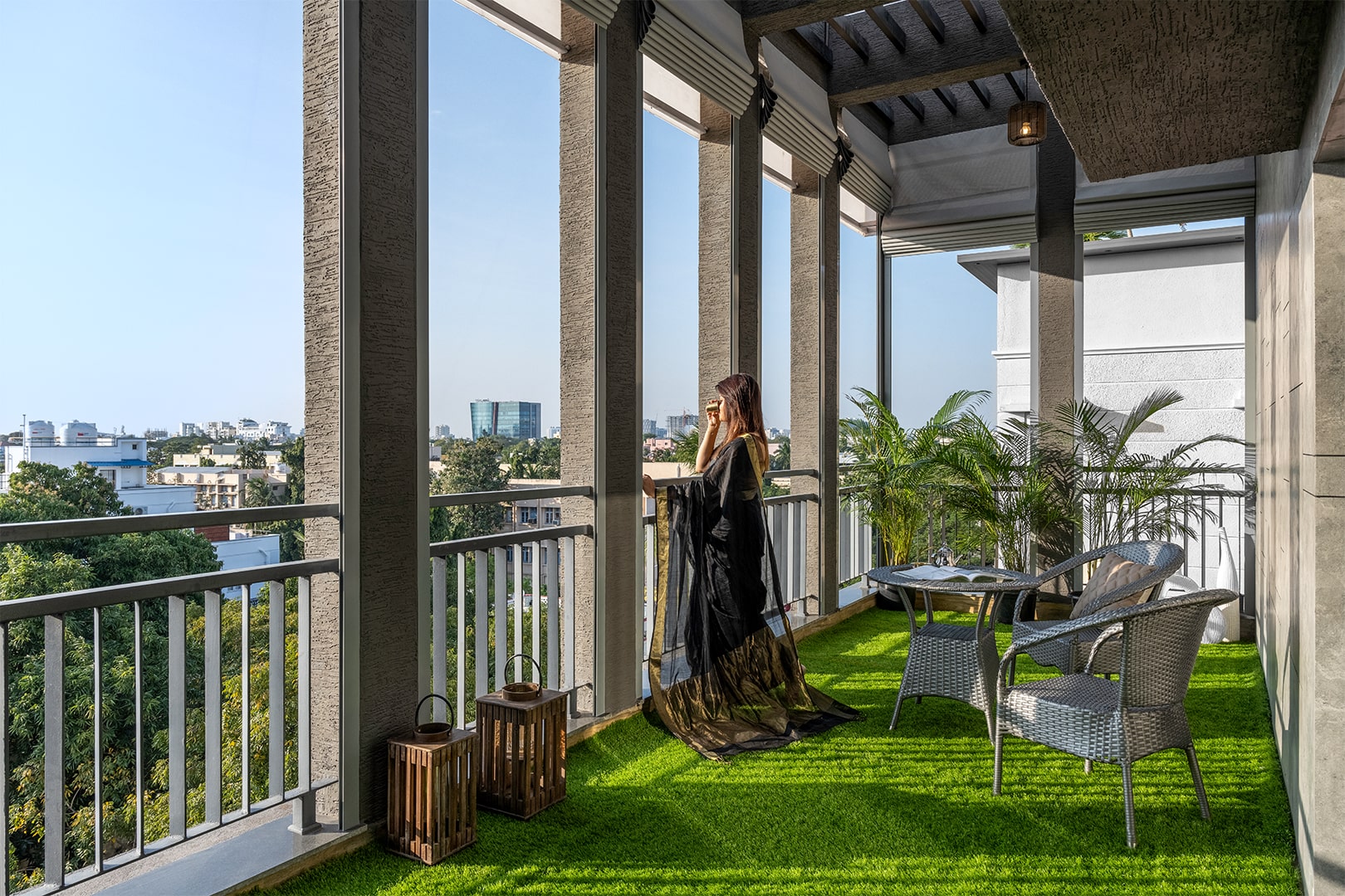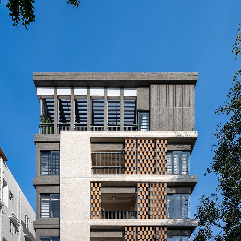 Located in the vibrant heart of Mylapore, Chennai, Tulive Antara is a premium five-storey residential complex where modern luxury meets Indian contemporary design. This architectural gem is a seamless blend of cutting-edge living and cultural elegance, reflecting the dynamic life of one of the city’s most cherished neighbourhoods. Tulive Antara features a striking facade of locally sourced stone and natural wood, creating a tactile and earthy material palette that harmonizes with its urban surroundings. The building’s design prioritizes open, light-filled spaces with expansive windows and private terraces, offering panoramic views and a strong connection to the cityscape.
